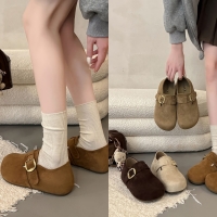 여성 겨울 4color 속굽 스웨이드 버클 로퍼 단화