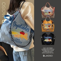 여성 데님 고양이 실사 일러스트 프린팅 숄더백