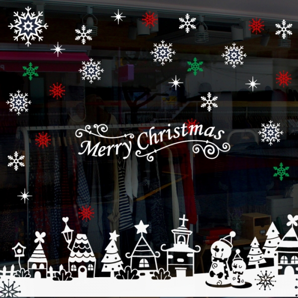 크리스마스 눈꽃 대형스티커 눈 내리는 마을