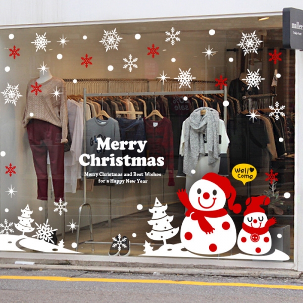 크리스마스 눈꽃 대형스티커 해피 눈사람