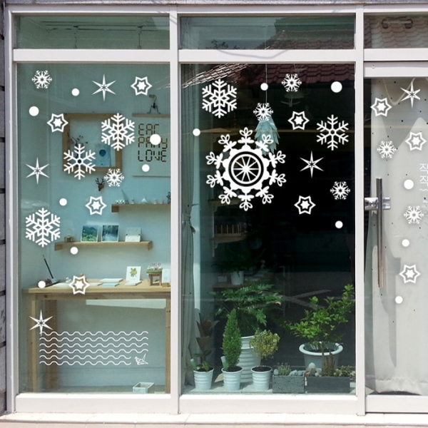 크리스마스 눈꽃 대형스티커 눈 내리는 밤