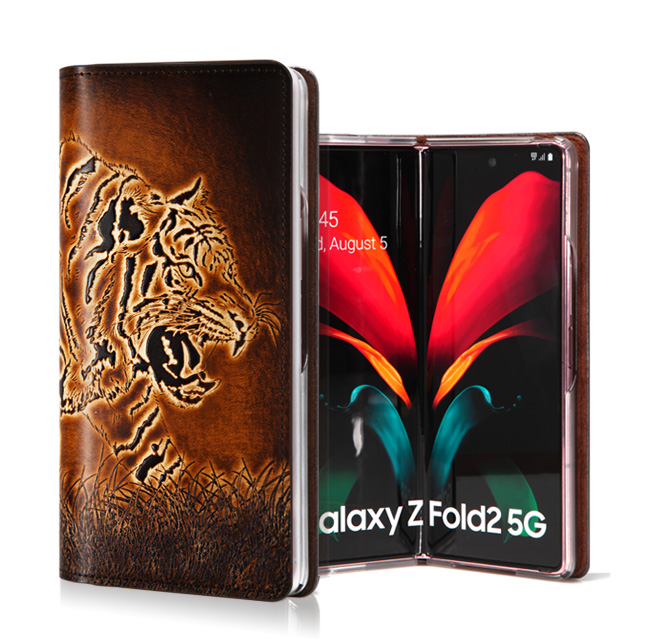 갤럭시 Z폴드2 타이거 가죽 다이어리 지갑 케이스