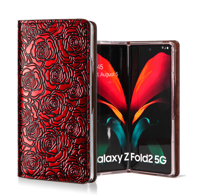 갤럭시 Z폴드2 장미 가죽 다이어리 지갑 케이스