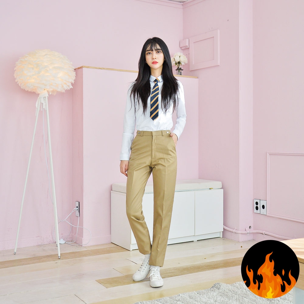 교복몰 (허리조절 기모) 스판 베이지 교복바지 교복