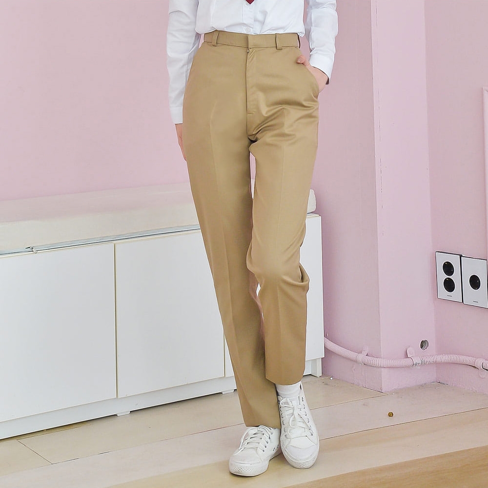 교복몰 (빅사이즈)스판 베이지 교복바지(여자) 교복