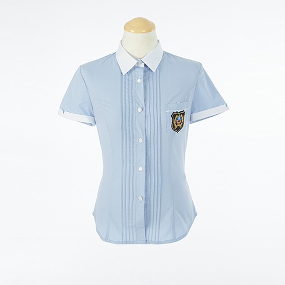 교복몰 양옆4줄 화이트 각카라 반팔 블루 셔츠 (송장