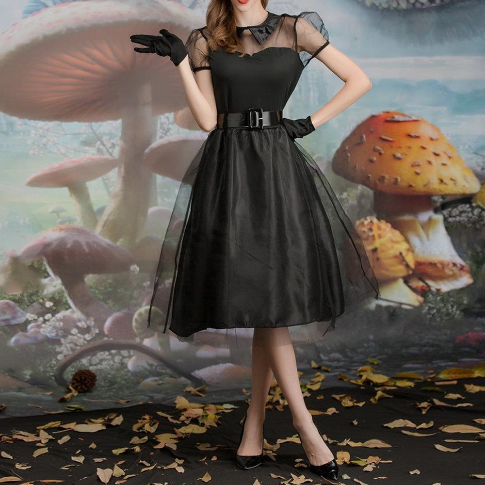 교복몰 블랙 마녀 망사 반팔 드레스 코스프레 세트