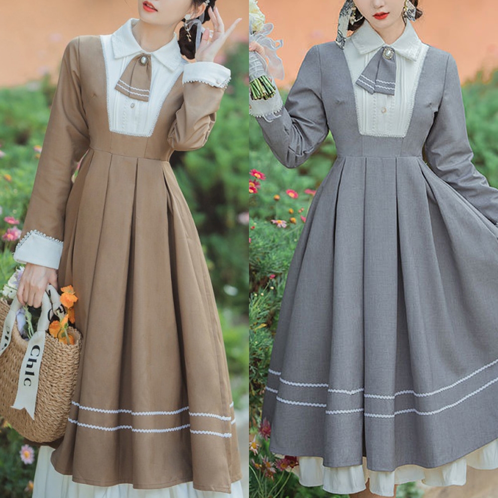 라인 디테일 라운드넥 클래식 원피스(3color) 교복