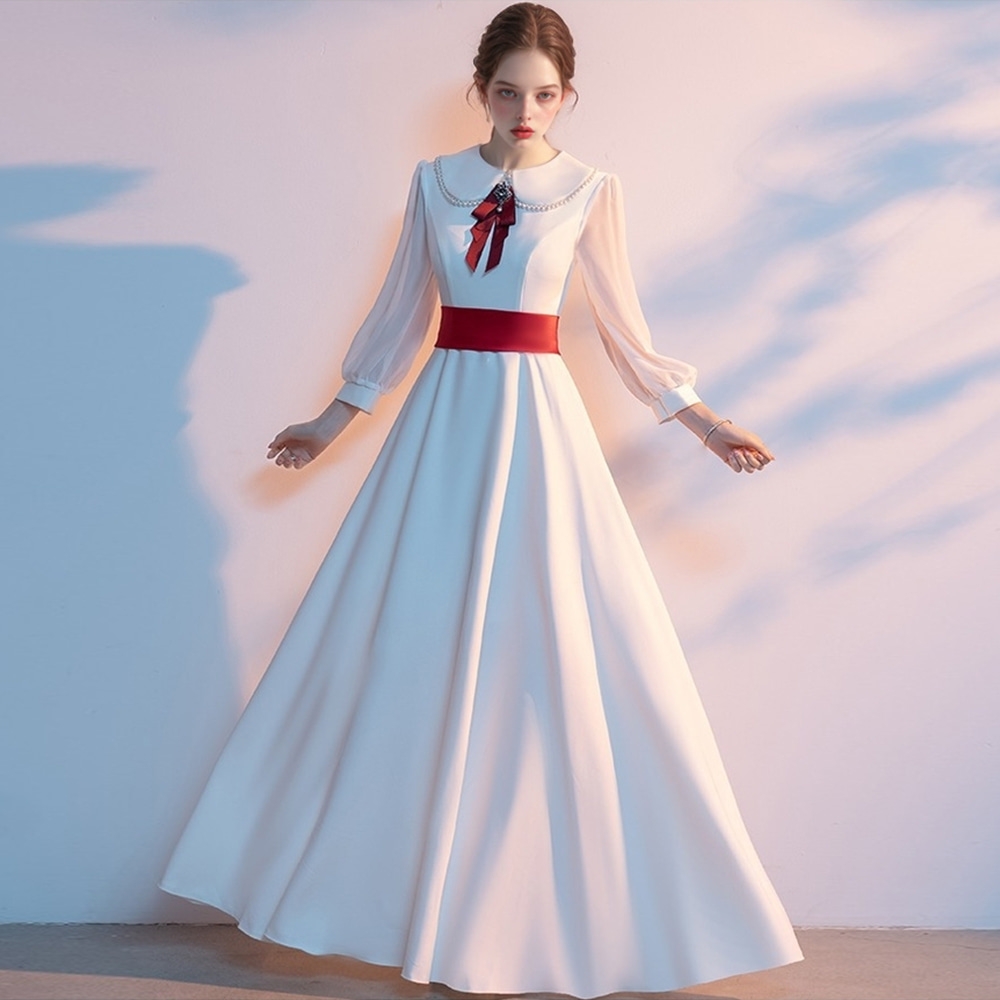 화이트 진주디테일 맥시 라운드카라 원피스 경성의상