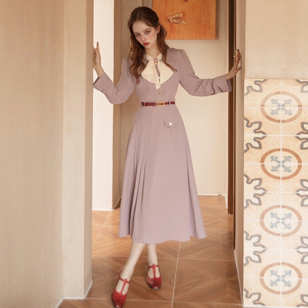 라인 디테일 라운드넥 클래식 원피스(3color) 교복