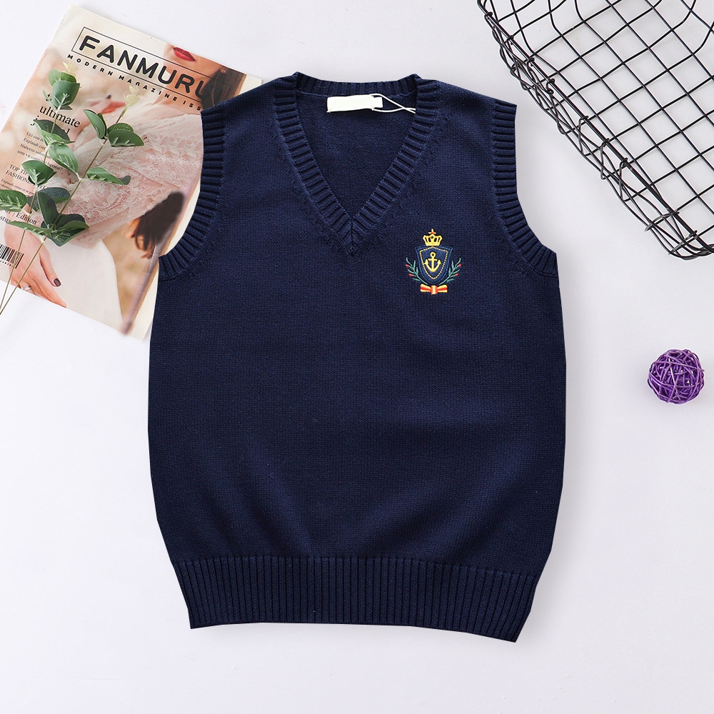 네이비 마린 크라운자수 브이넥 여자 교복조끼 교복