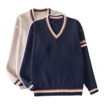 남녀공용 두줄라인 브이넥 니트 스웨터(2color) 교복