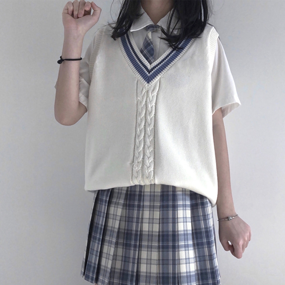 남녀공용 화이트 차콜라인 교복조끼 교복 학생복