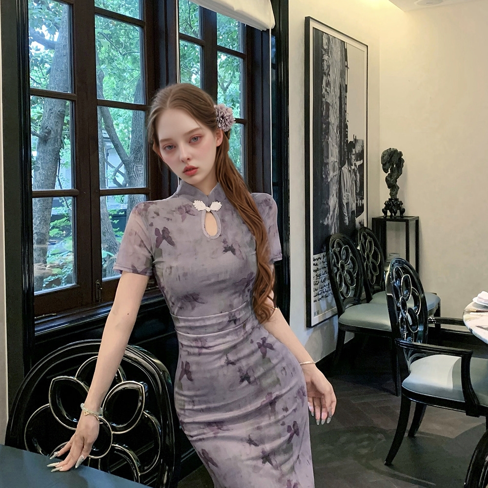 퍼플 버터플라이 홀터넥 치파오 원피스 교복 학생복
