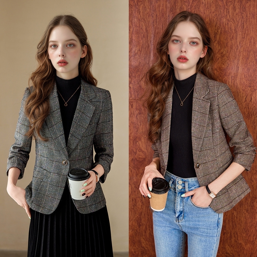 (대여) 헤링본 체크 클래식 세미 슬림핏 자켓