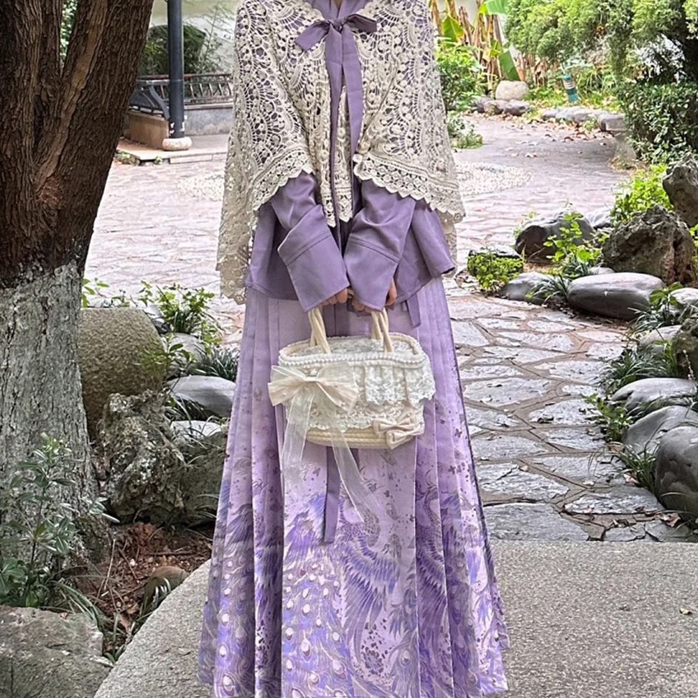 스프링 플라워 퍼플 의상세트(탑 숄 치마) 교복 학생