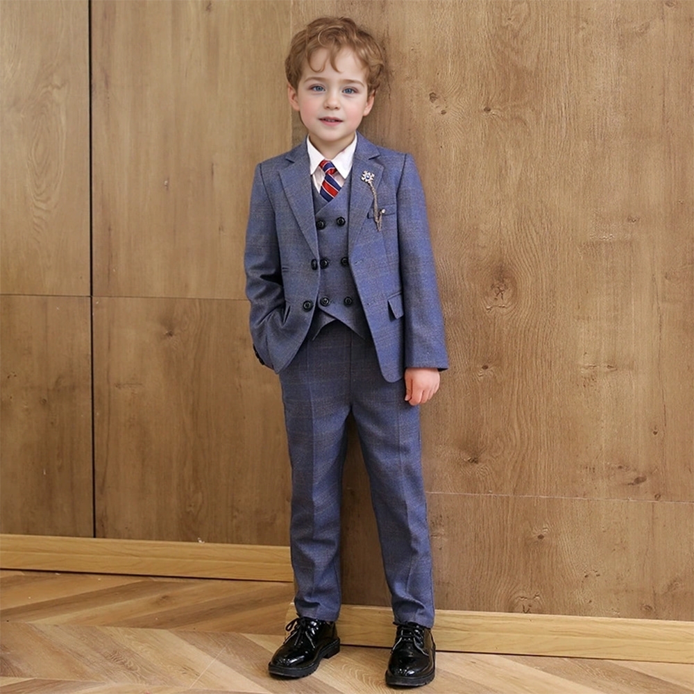블루그레이 체크무늬 정장 턱시도 풀세트(자켓 양장