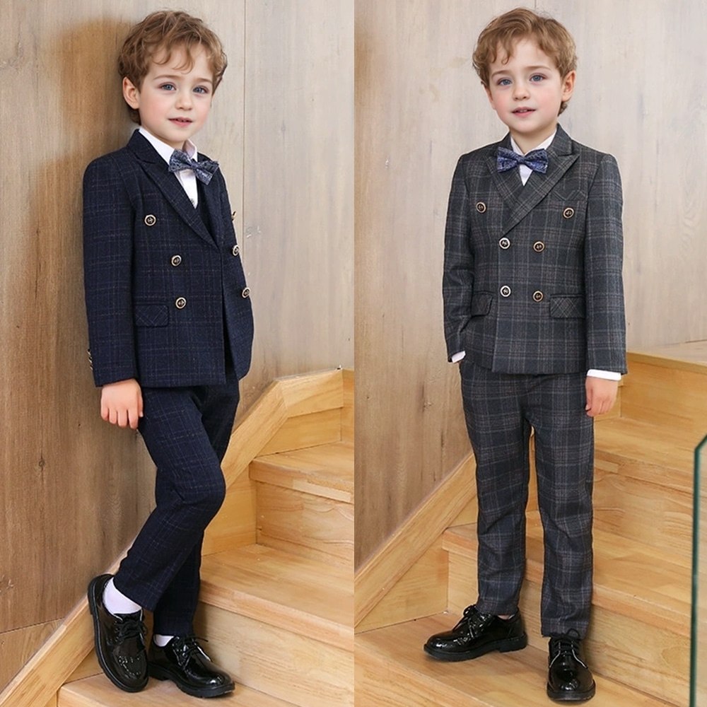 에단 브레스티드 체크패턴 정장 턱시도 풀세트(자켓