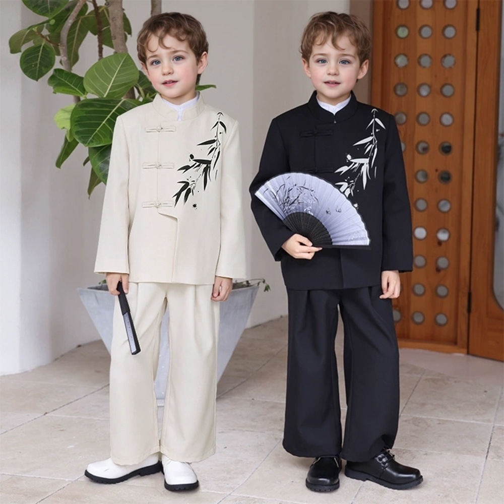 대나무 프린팅 창파오 공연 무대의상 세트(자켓 셔츠