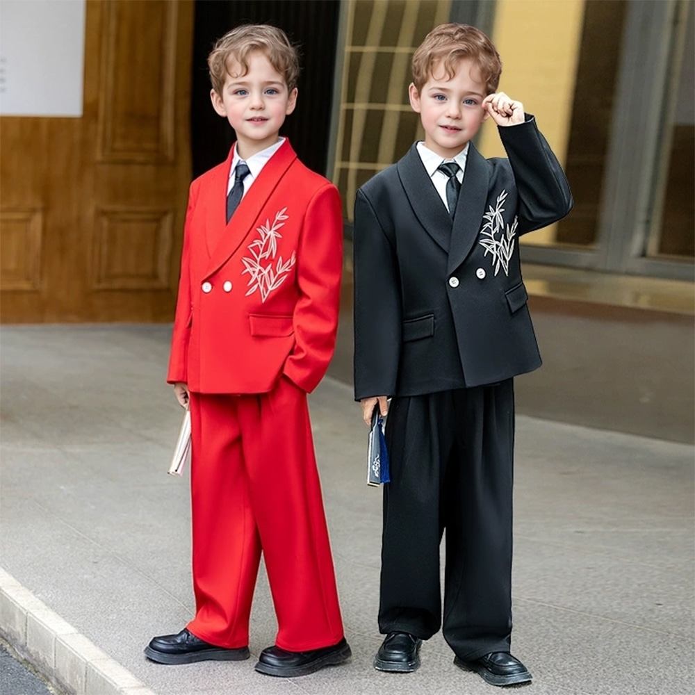 브레스티드 대나무 자수 오버핏 턱시도 정장세트