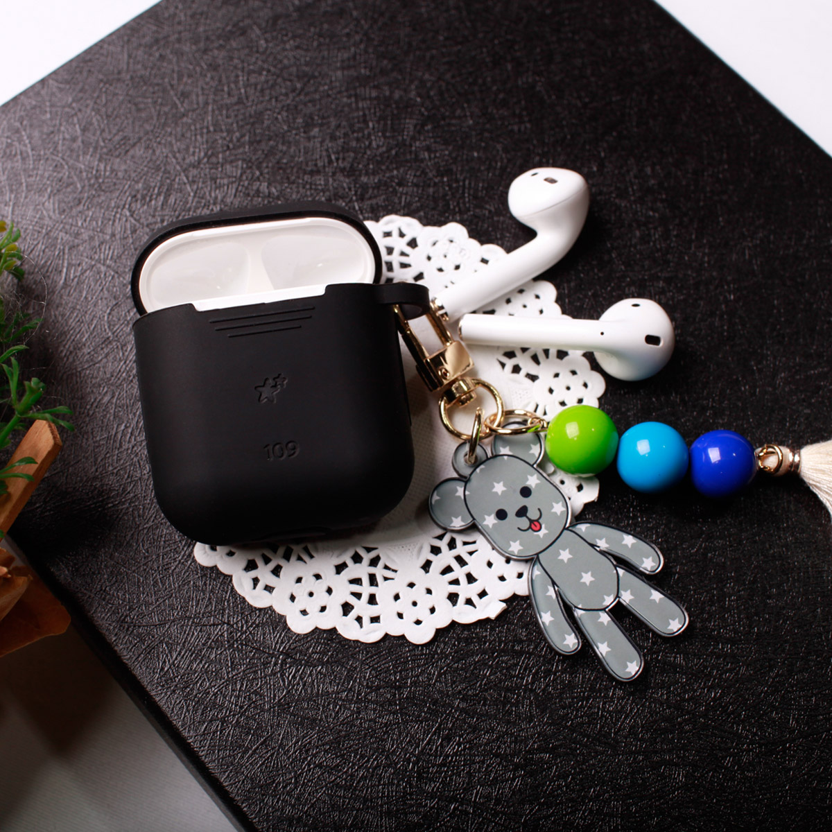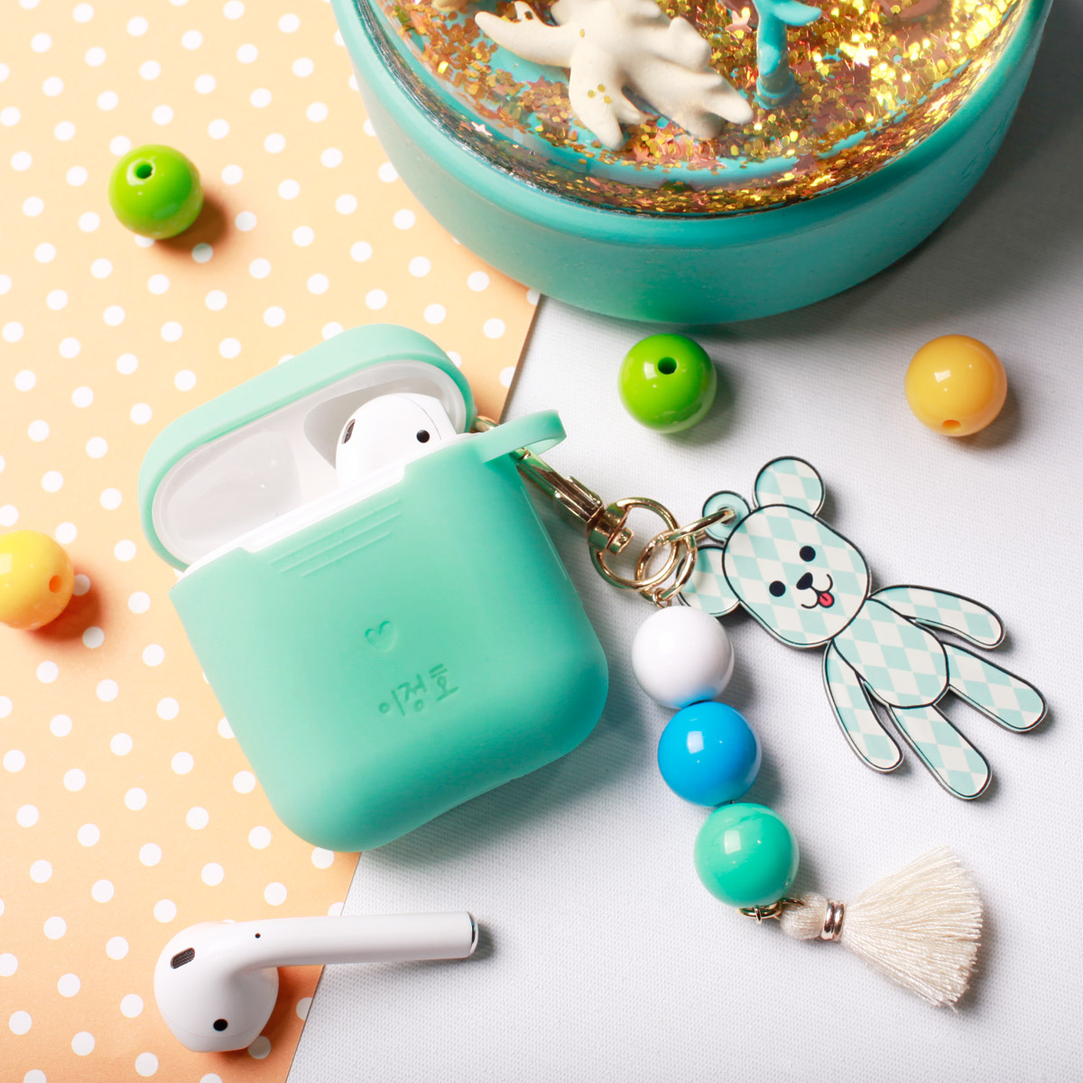 [주문제작] 실리콘 에어팟 각인 케이스+곰돌이키링
