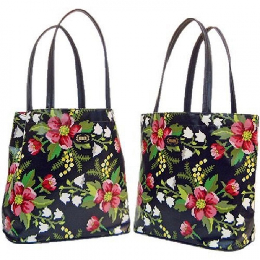 꽃무늬가 프린팅된 면에 폴리염화비닐코팅(PVC)을 하여 오염에 강한 쇼핑백입니다.