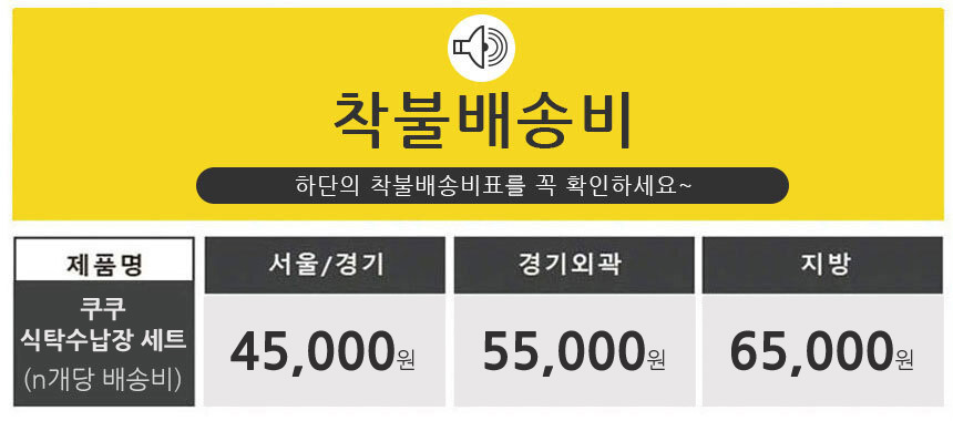 배송알림 상품별, 지역별로 배송비가 차등적용되오니 상세페이지를 꼭 확인해 주세요.