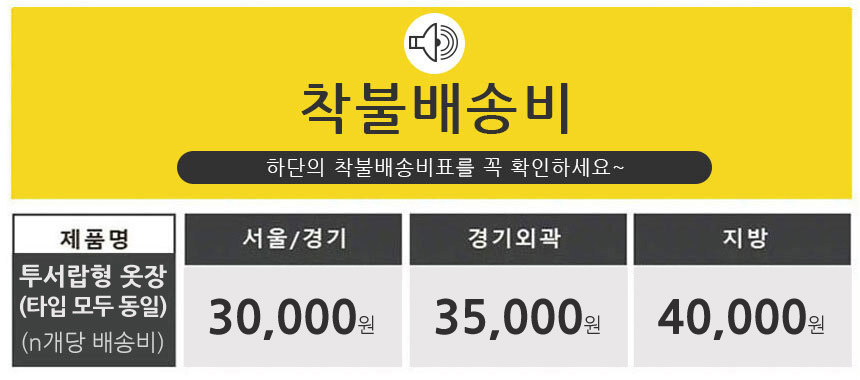 이 상품은 착불 배송 (배송 지역, 상품 크기에 따라 배송비가 다르며 제품 수령시 고객님께서 배송비를 지급합니다. 상품입니다.