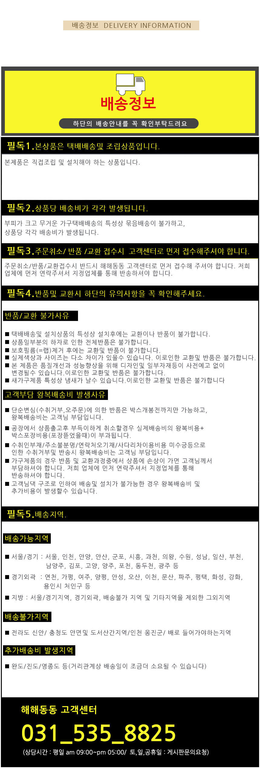 배송알림 상품별, 지역별로 배송비가 차등적용되오니 상세페이지를 꼭 확인해 주세요.