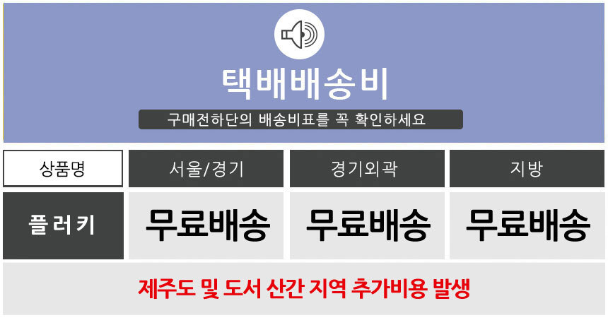 배송알림 상품별, 지역별로 배송비가 차등적용되오니 상세페이지를 꼭 확인해 주세요.