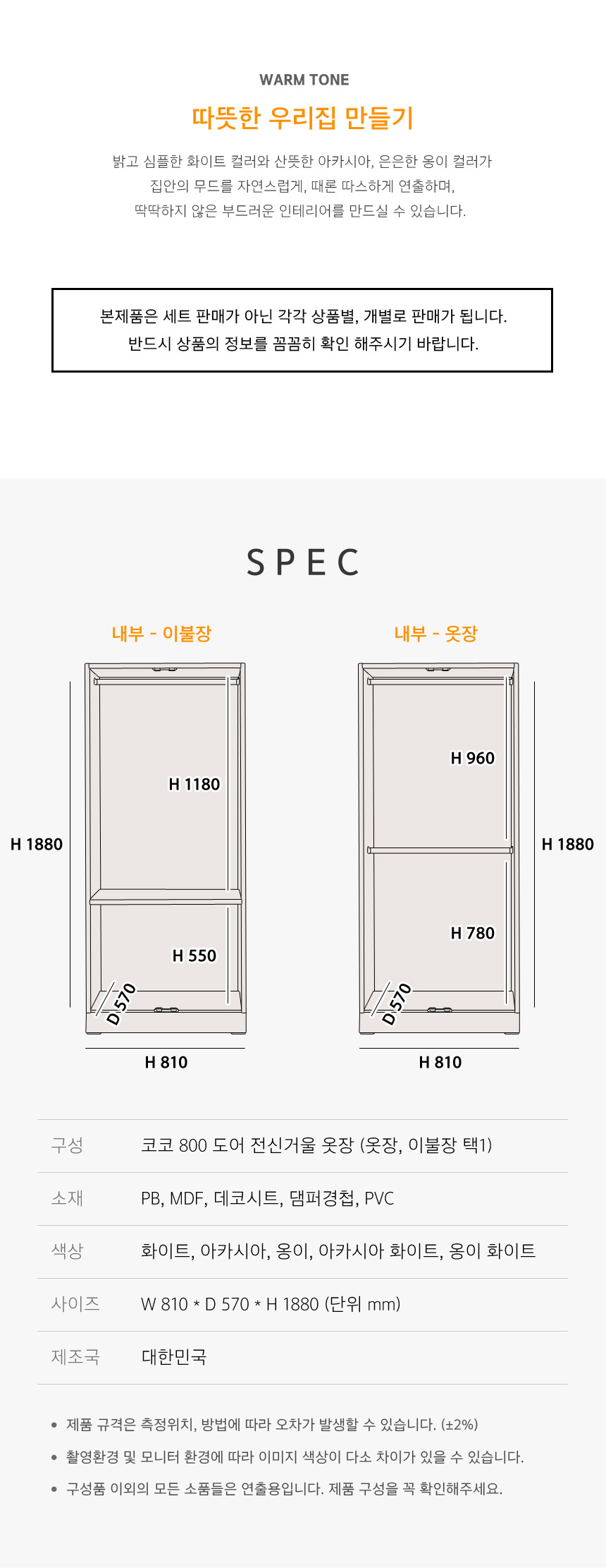 코코 800 도어 전신거울 옷장 이불장 (88)