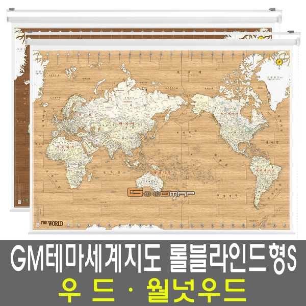 도서명 세계지도 GM테마 우드/월넛우드 롤블라인드형/S사이즈