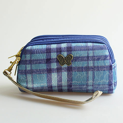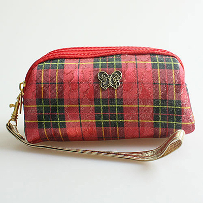 체크 3단 파우치