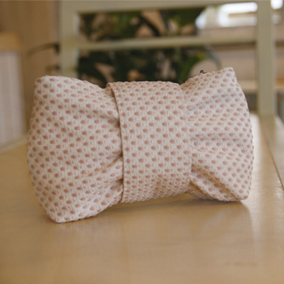 이쁜 땡땡이 무늬의 폴리원단으로 만든 리본모양의 폭신한 파우치 입니다.