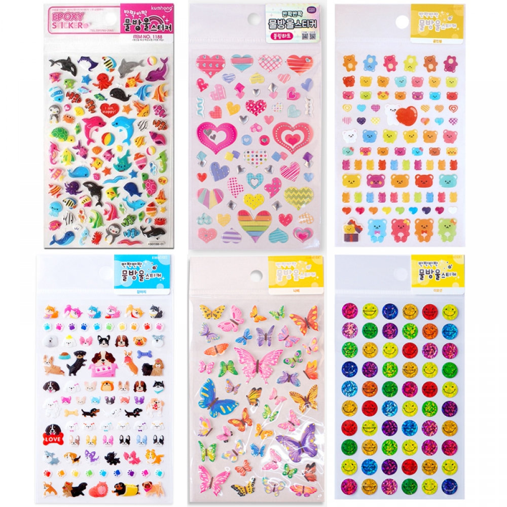 어린이 캐릭터 반짝반짝 입체비즈장식 물방울 스티커