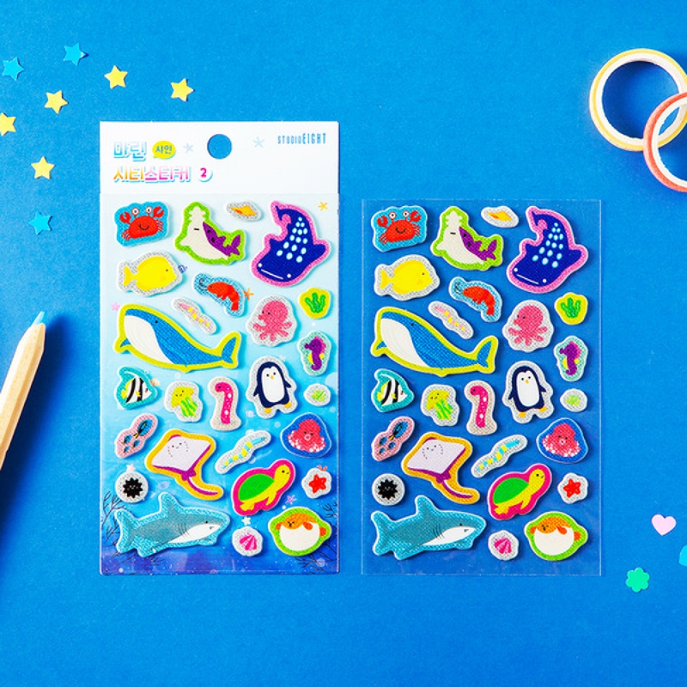 어린이 반짝반짝 입체 해양동물 바다동물 스티커