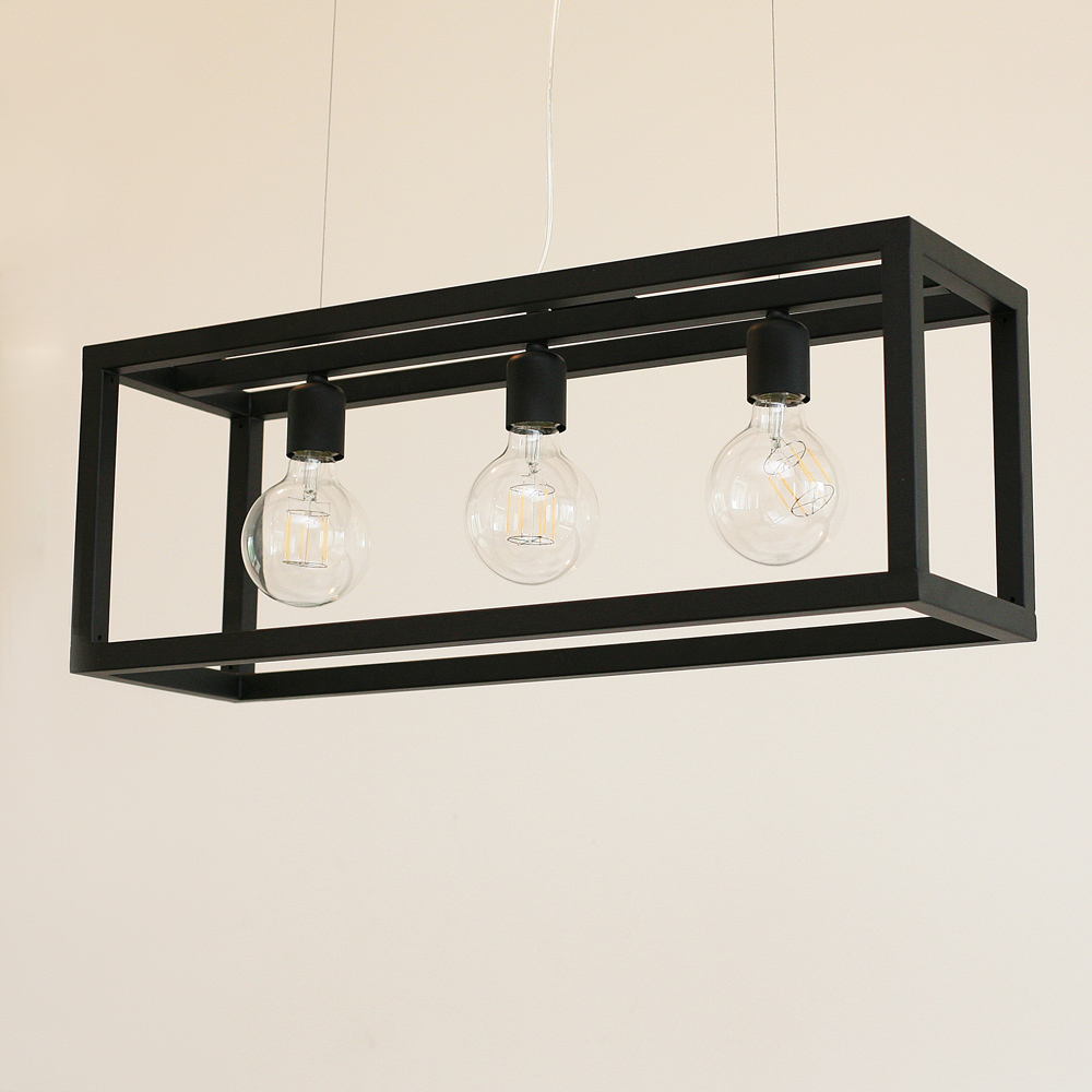 블랙 스틸로 제작된 세련된 분위기의 3등 팬던트 입니다.