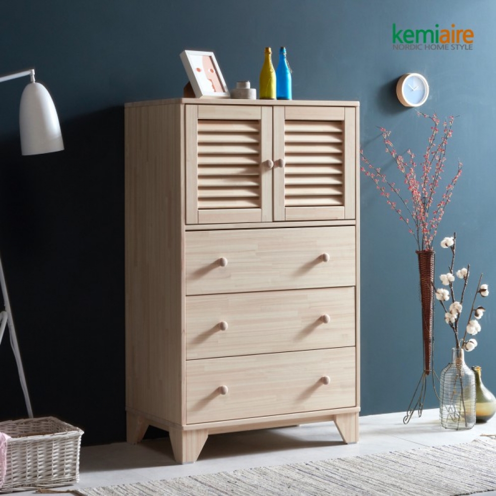 케미에르 편백나무원목(무절) 갤러리 3단서랍 옷장