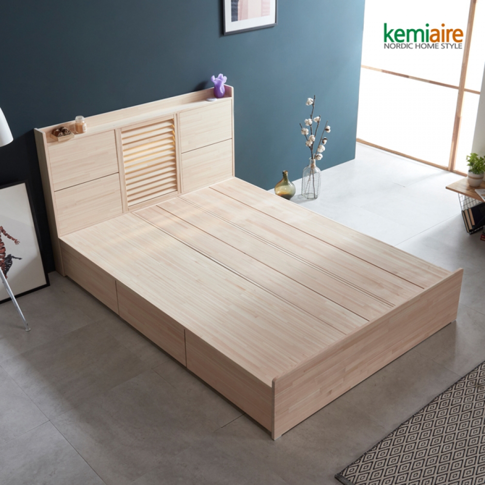 품명 케미에르 편백나무원목(무절) 갤러리 퀸침대프레임(서랍형) KFR-101Q