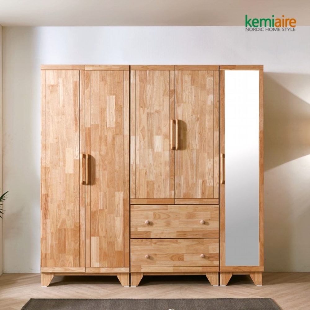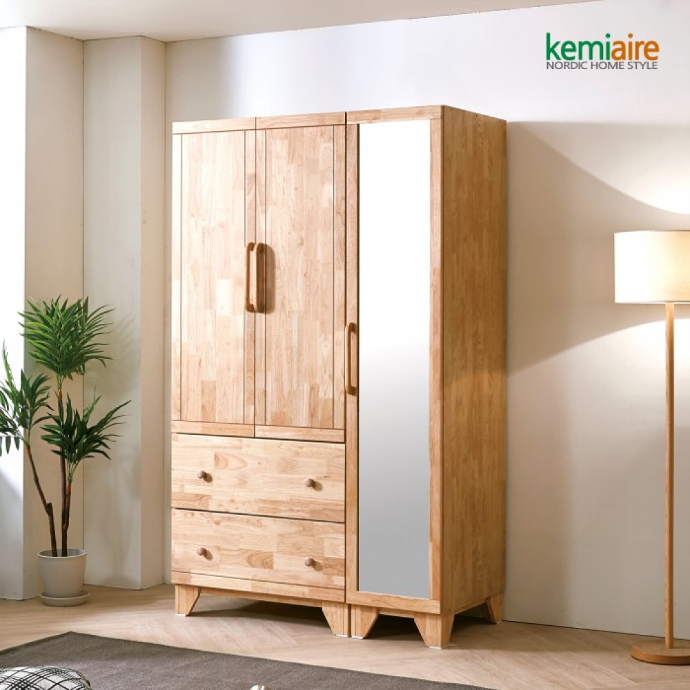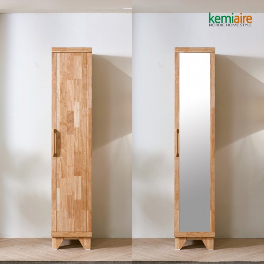 케미에르 메이크 고무나무원목 거울(하프)옷장