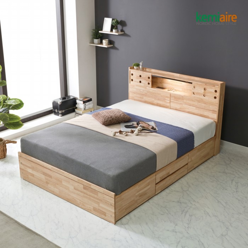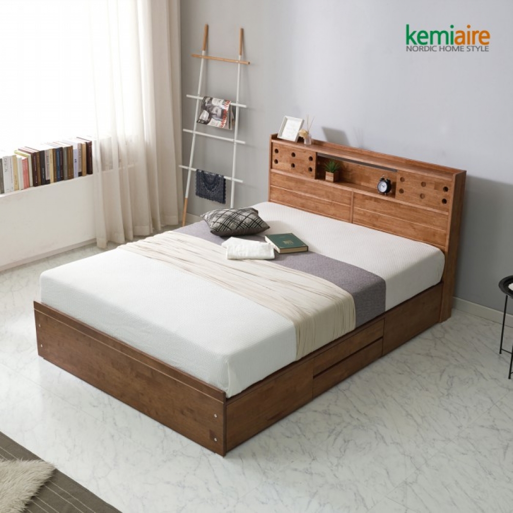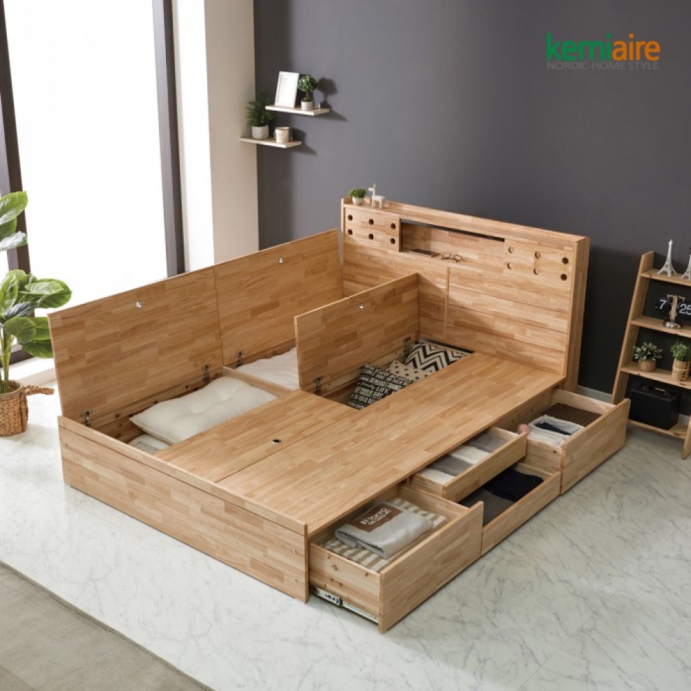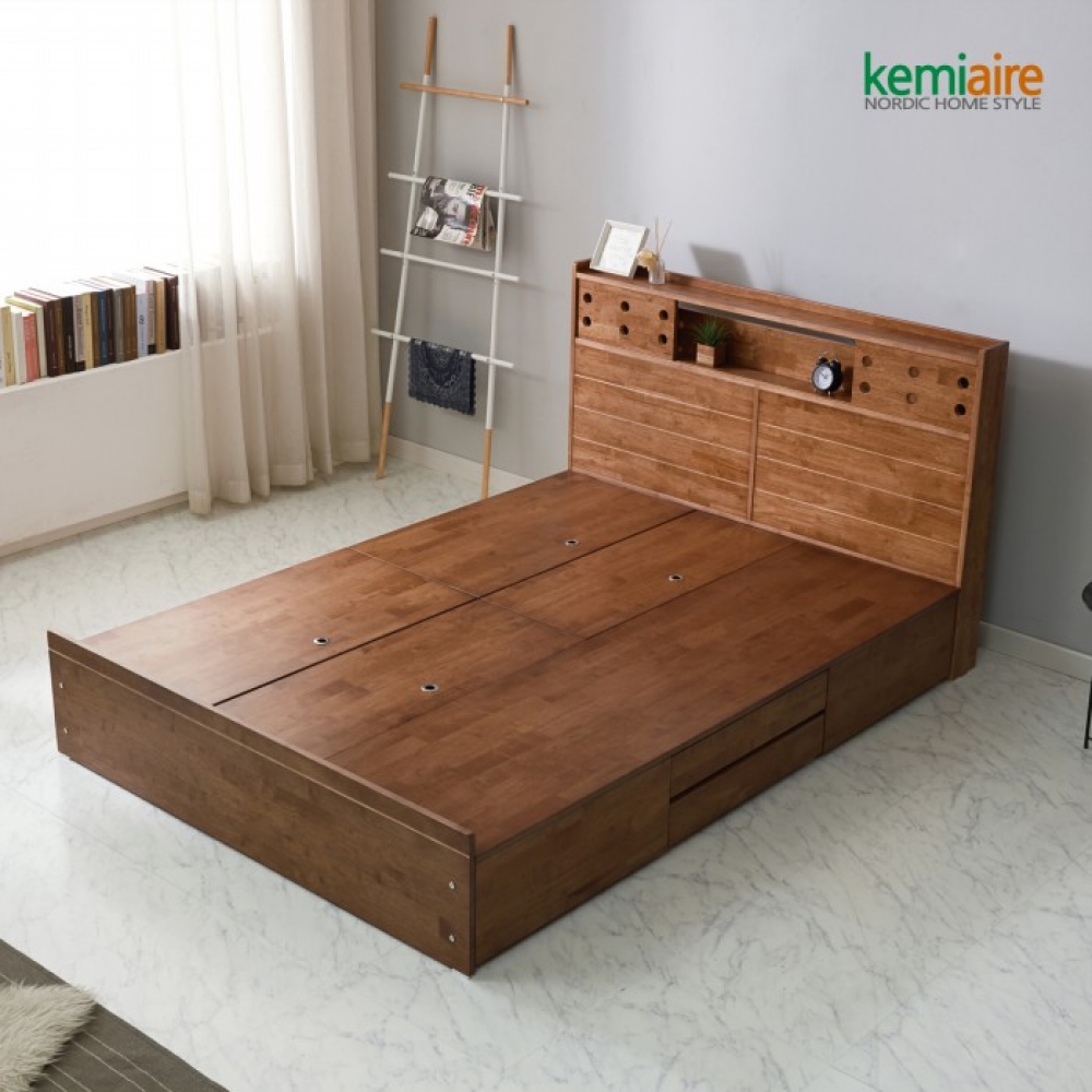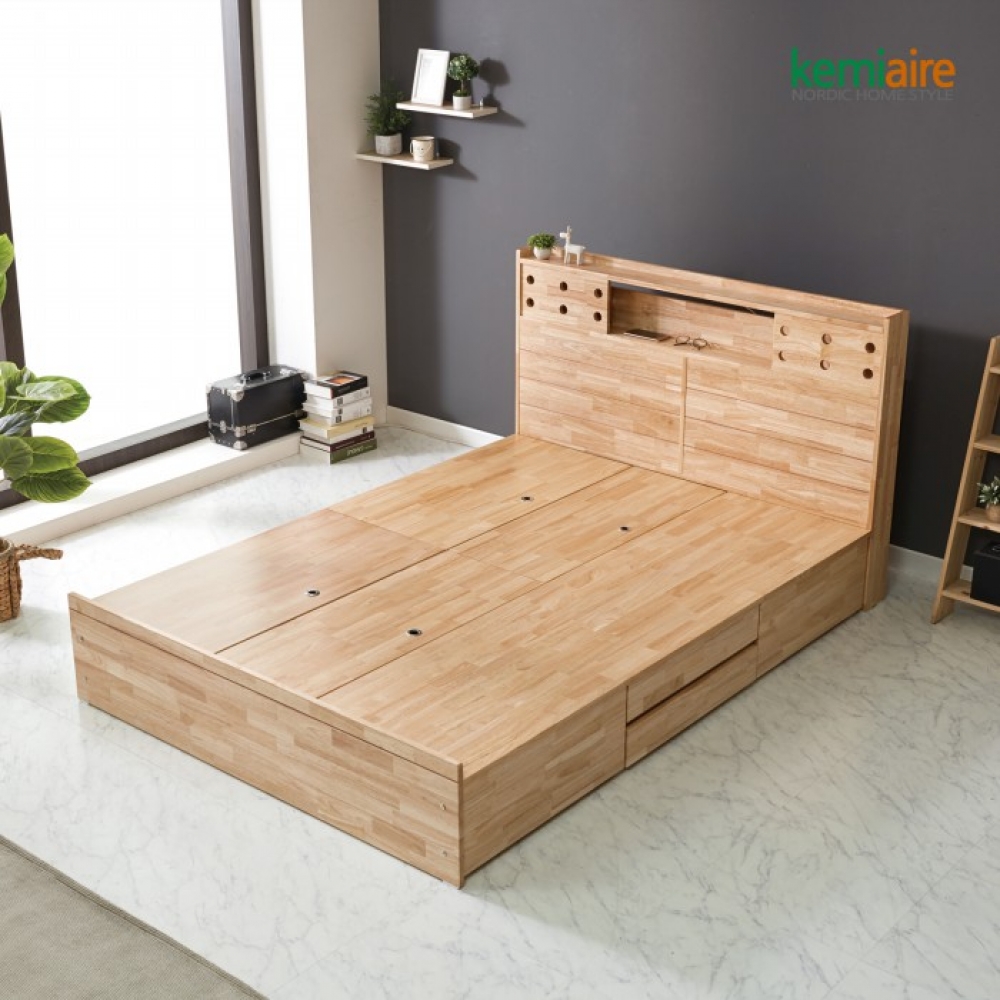 품명 케미에르 메이크 고무나무원목 퀸 침대프레임(수납형) KFR-301Q
