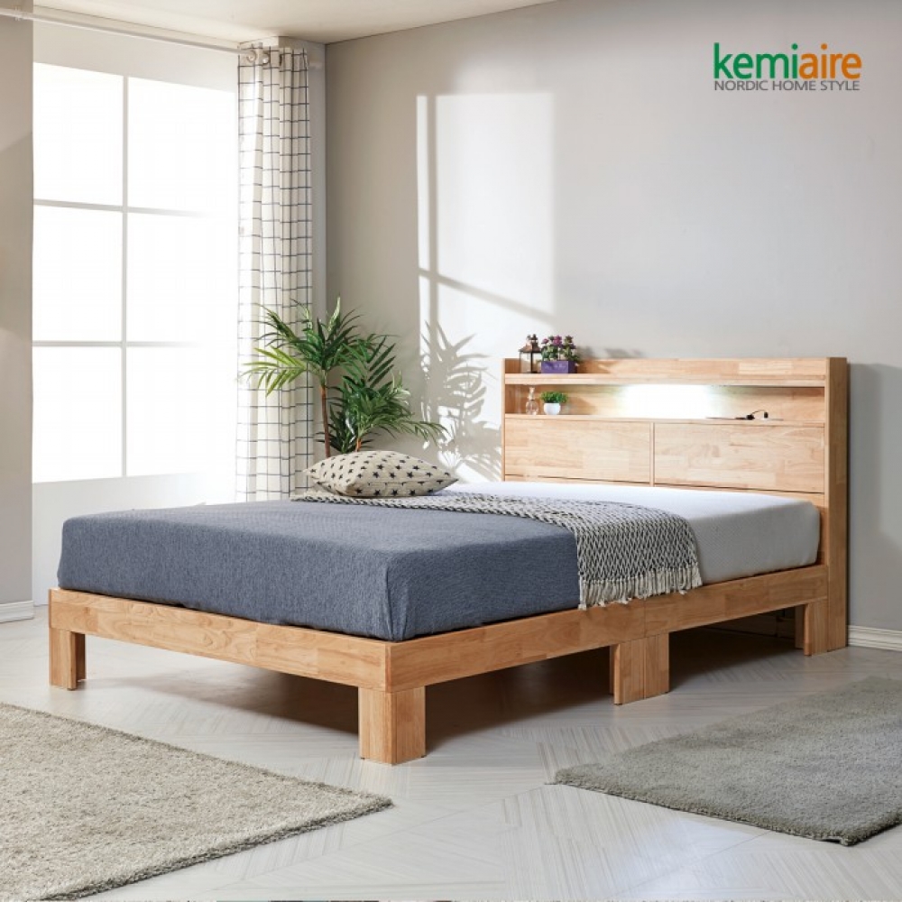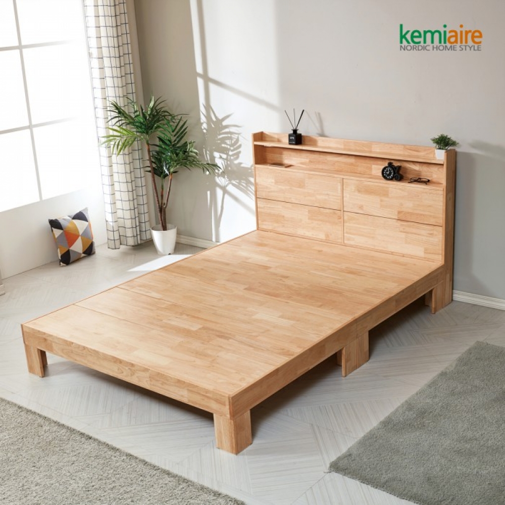 케미에르 메이크 고무나무원목 퀸 침대프레임 Q