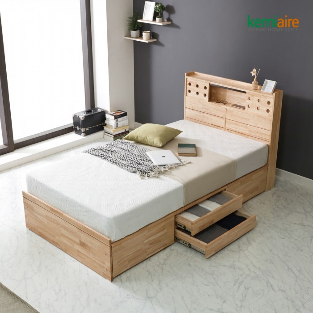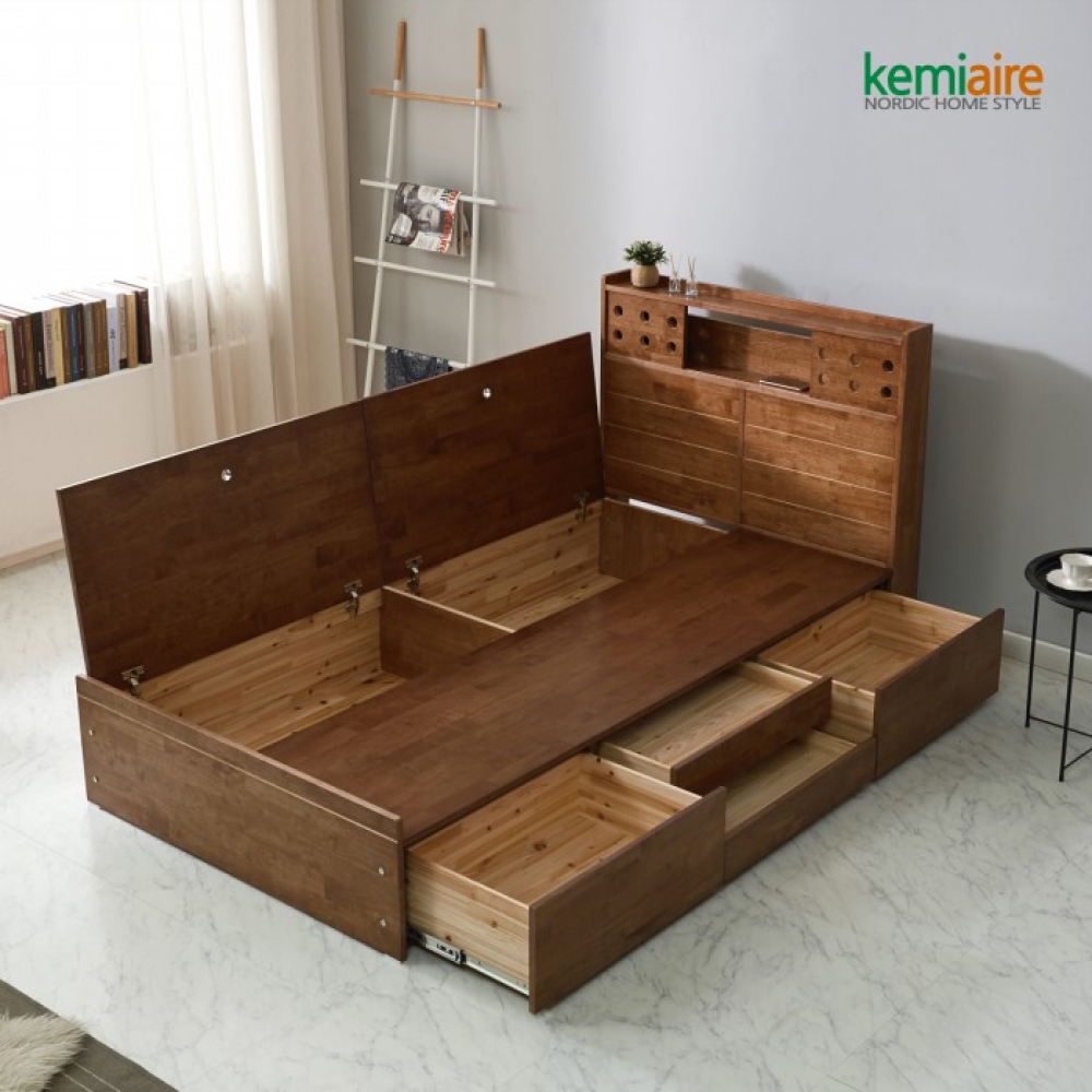 품명 케미에르 메이크 고무나무원목 슈퍼싱글 침대프레임(수납형) KFR-301SS
