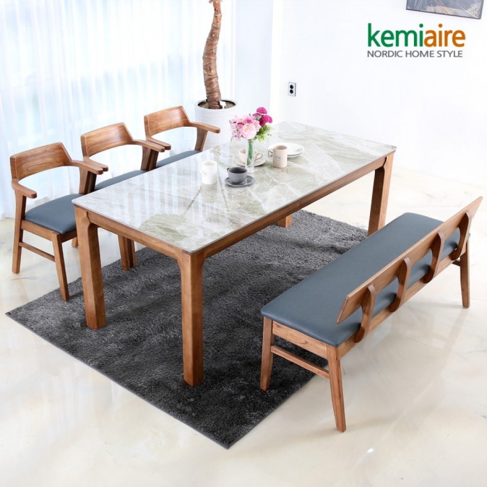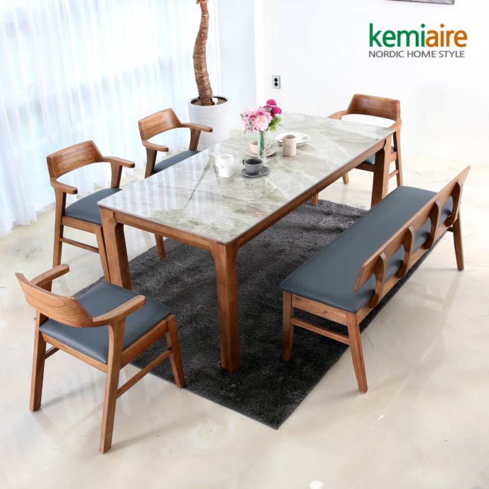 품명 케미에르 산테르 6인 통세라믹 원목식탁SET(벤치형) KHD-963B