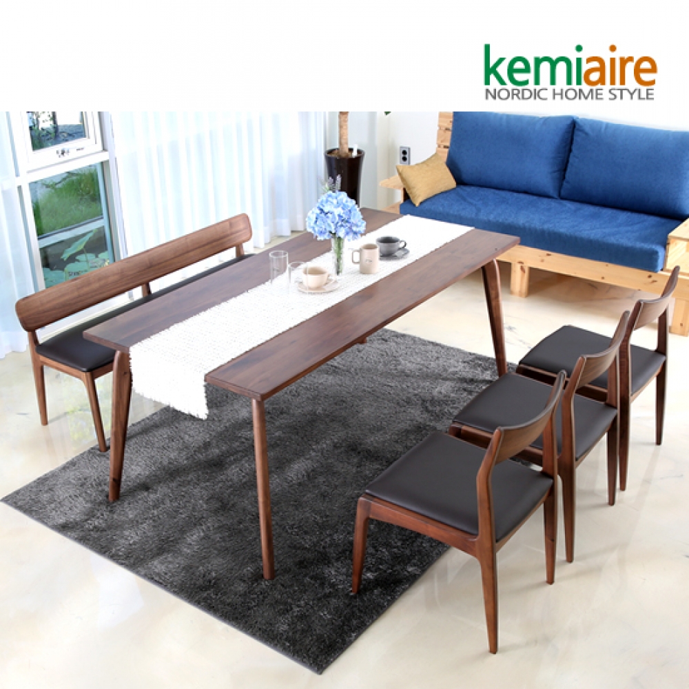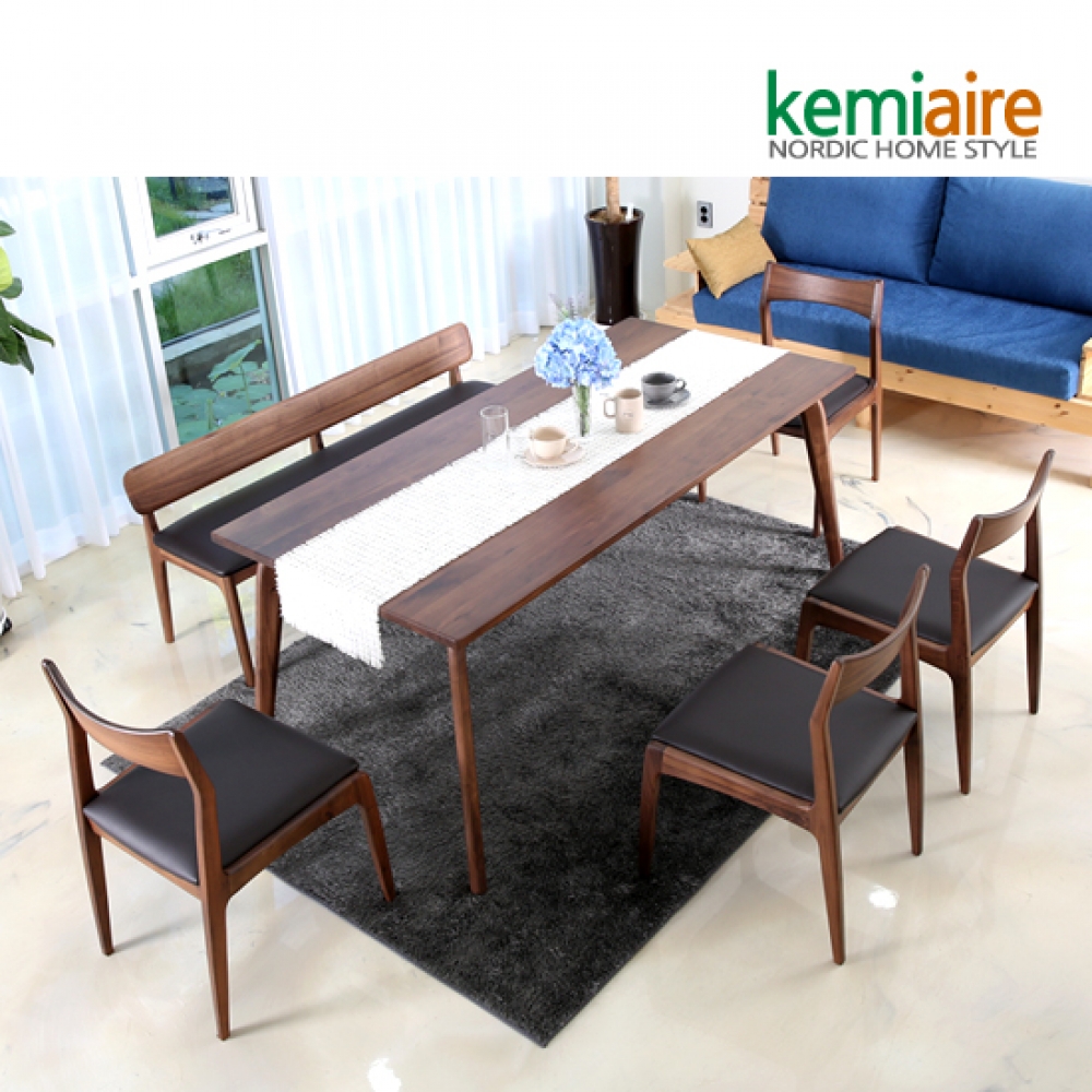 품명 케미에르 크레프트 호두나무원목 6인식탁SET(벤치형) KRS-603B