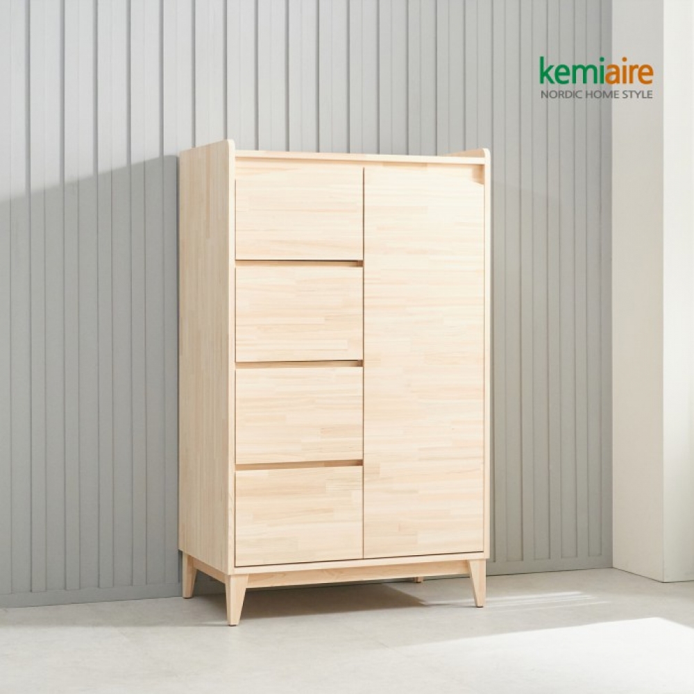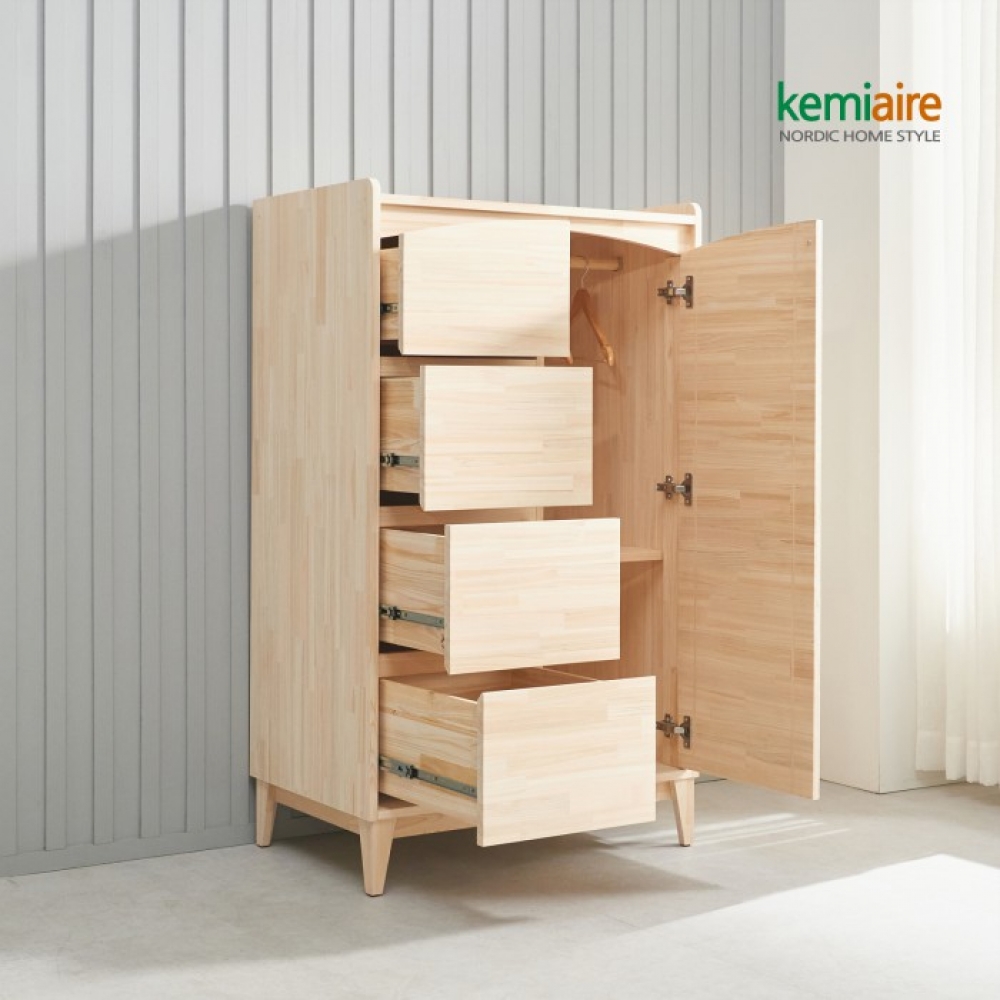품명 케미에르 바른 편백나무(무절)원목 4단 서랍하프옷장 KEL-105