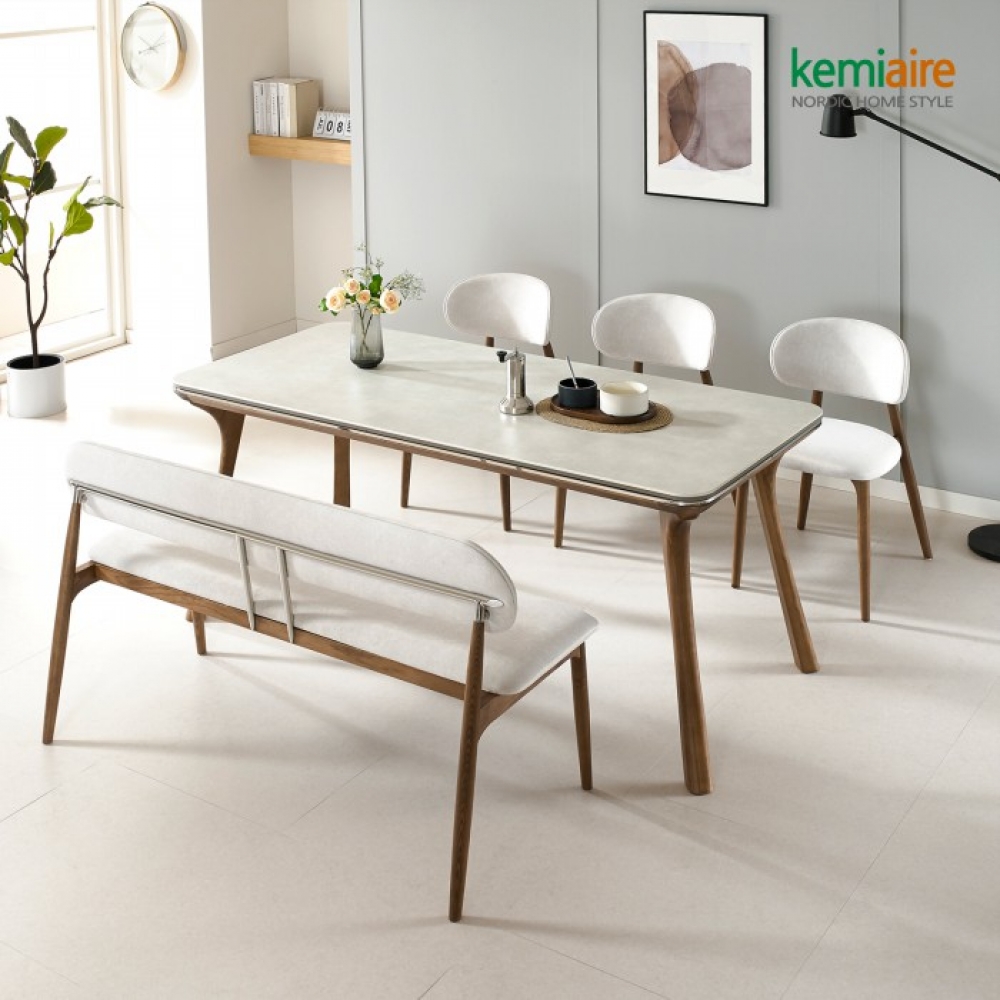 품명 케미에르 트리에 양면세라믹 애쉬원목 6인식탁SET(벤치/의자) KGN-907B