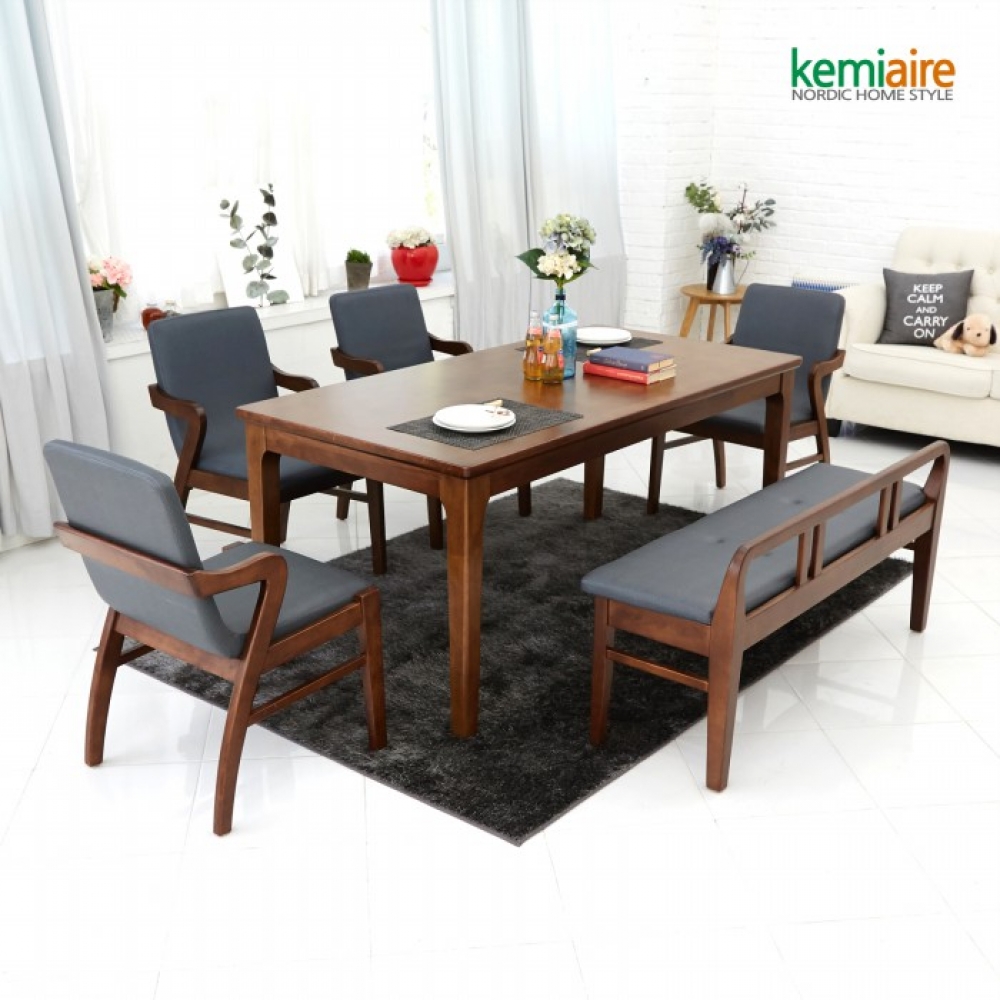 케미에르 고스트 6인용 원목식탁SET(네이비) KHD-624