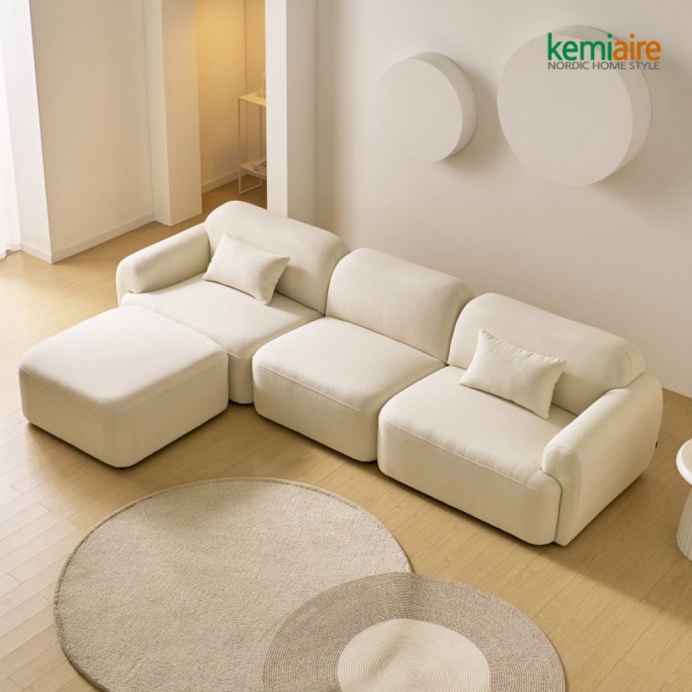 케미에르 레브레아 부클레원단 4인 패브릭쇼파+스툴