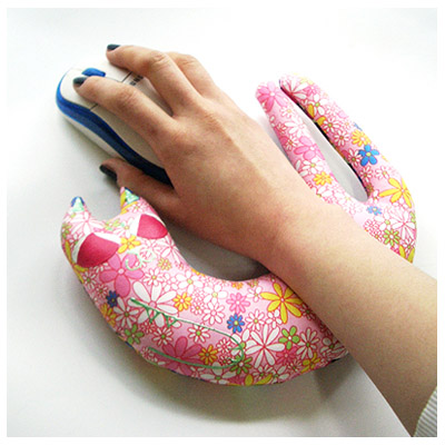 유연고양이 마우스쿠션(핑크꽃)